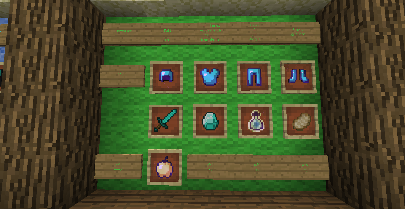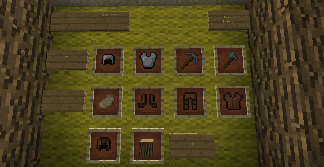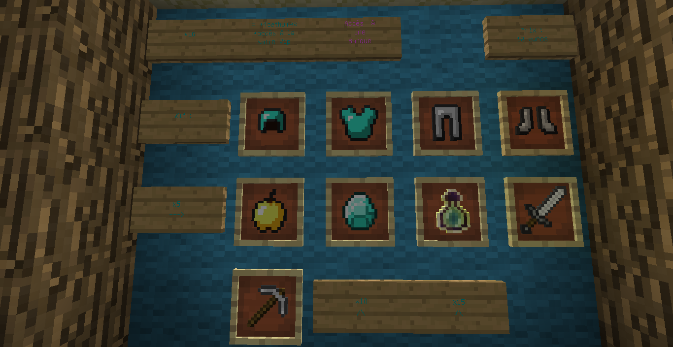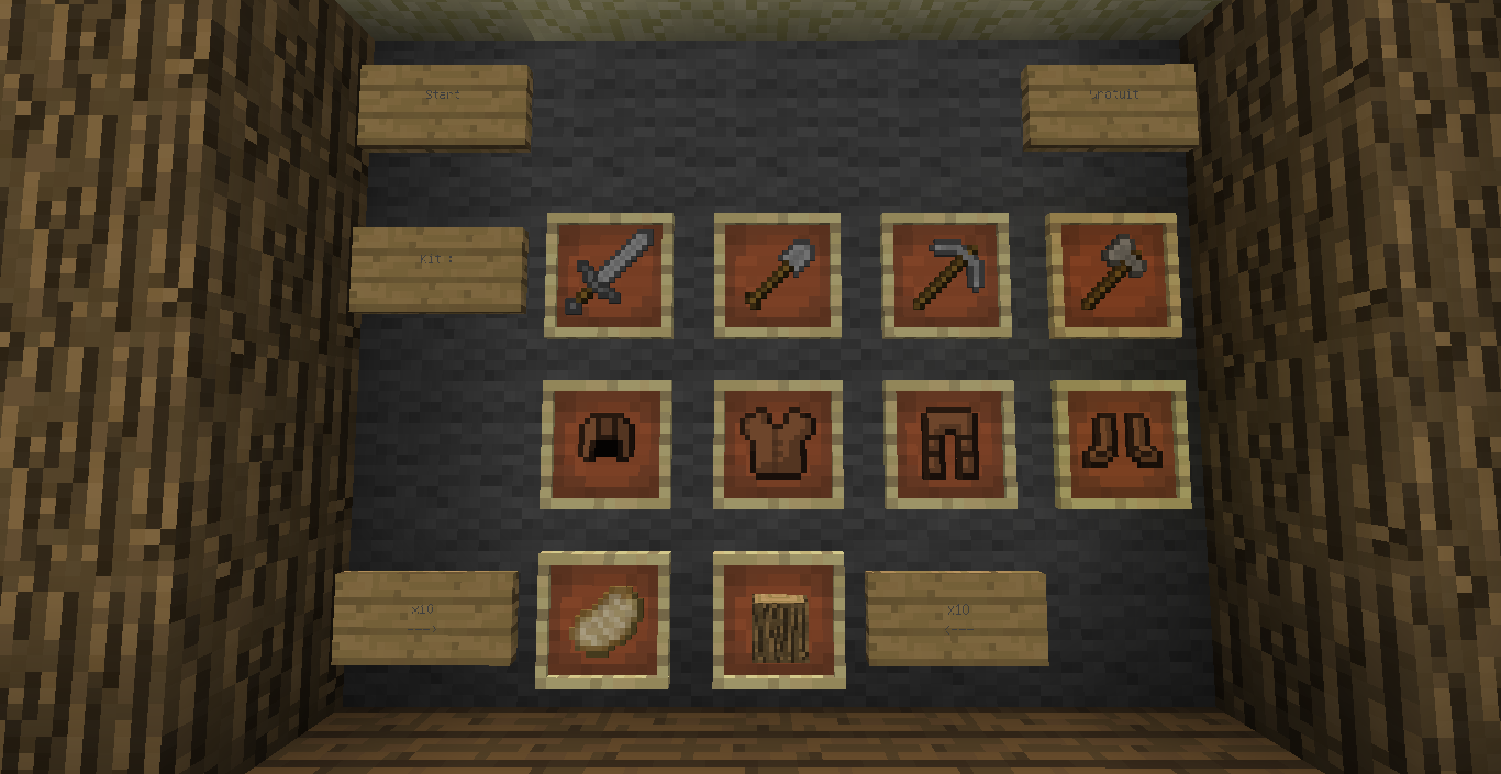 - armure en fer + épée et pioche en fer